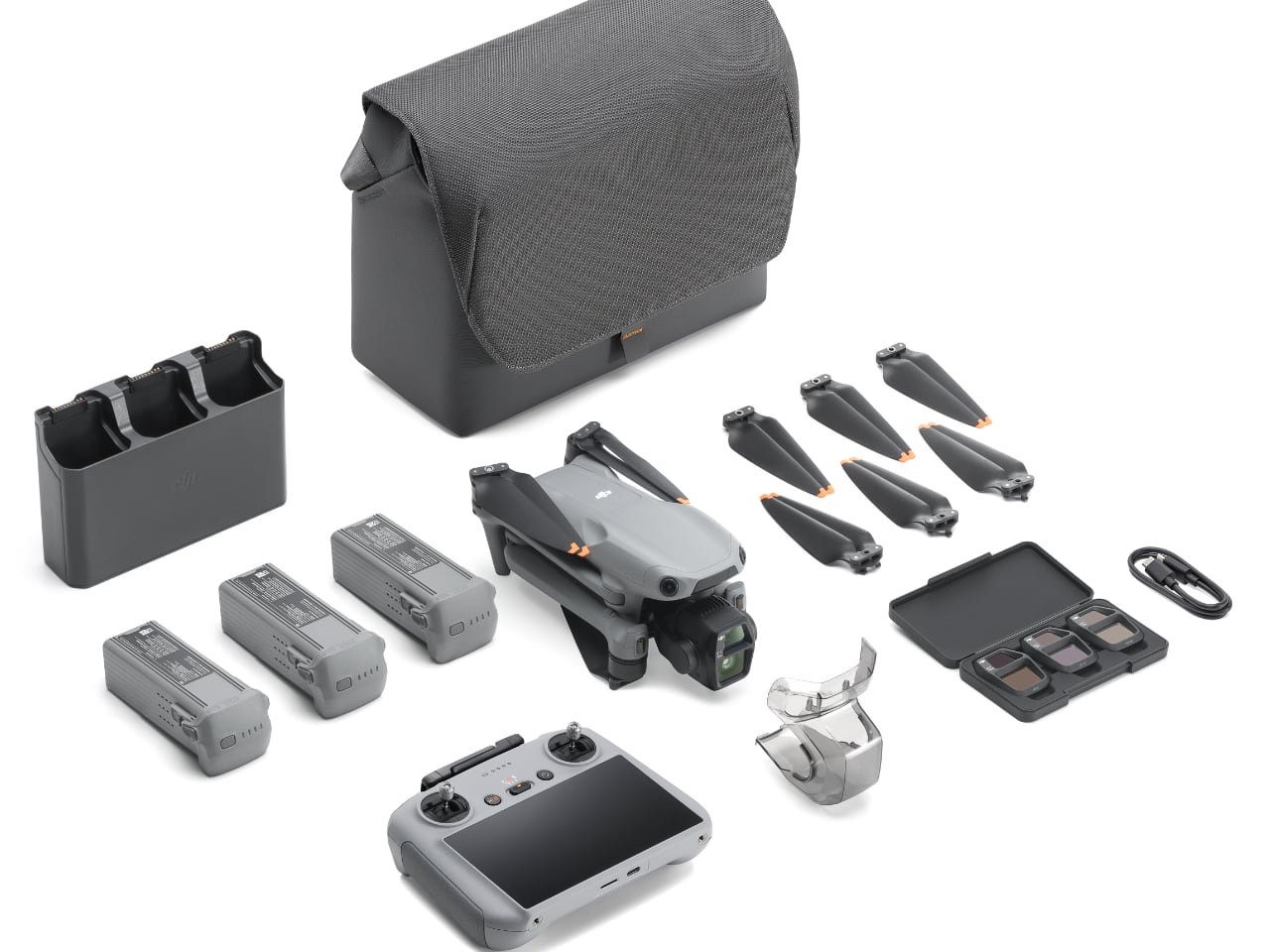 DJI دو گزینه Fly More Combo را برای کسانی که به دنبال یک بسته کاملتر هستند، ارائه میدهد. DJI Air 3S Fly More Combo (DJI RC-N3) با قیمت 1,399 دلار شامل چندین لوازم جانبی ارزشمند است. این بسته شامل کنترلر از راه دور DJI RC-N3، ست فیلتر ND برای مدیریت نوردهی در شرایط روشن، دو باتری اضافی برای افزایش زمان پرواز، هاب شارژ باتری برای مدیریت راحتتر انرژی و کیف شانهای برای حمل آسانتر پهپاد میباشد.