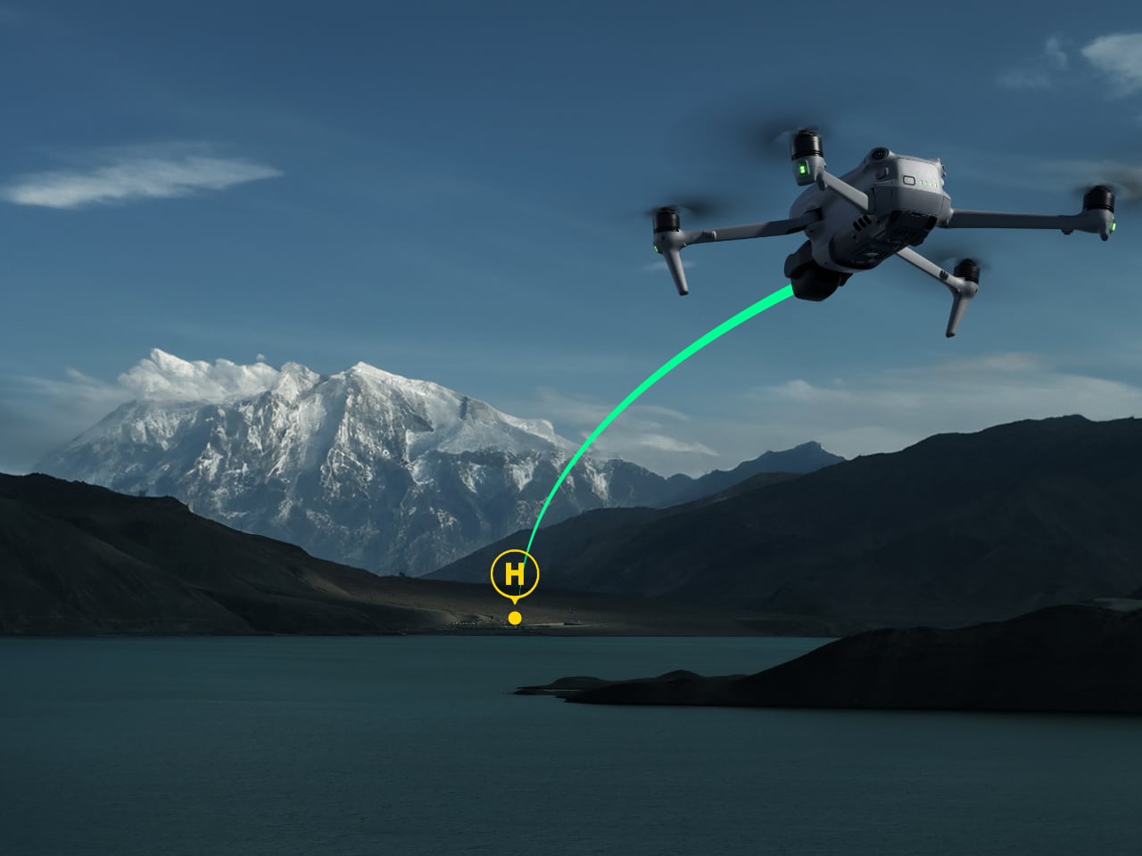 DJI Air 3S دارای نسل جدیدی از سیستم بازگشت به خانه (RTH) است که از قابلیتهای حسگری پیشرفته برای مسیریابی ایمنتر و کارآمدتر استفاده میکند، در شرایط نور مناسب، پهپاد از فناوری موقعیتیابی بصری لحظهای و ساخت نقشه در زمان واقعی برای حفظ مسیر پرواز خود بهره میبرد. این ویژگی، بازگشت ایمن پهپاد را حتی در مکانهایی با سیگنال ماهوارهای ضعیف، مانند فضاهای داخلی یا مناطق پوشیده از درختان متراکم، تضمین میکند.